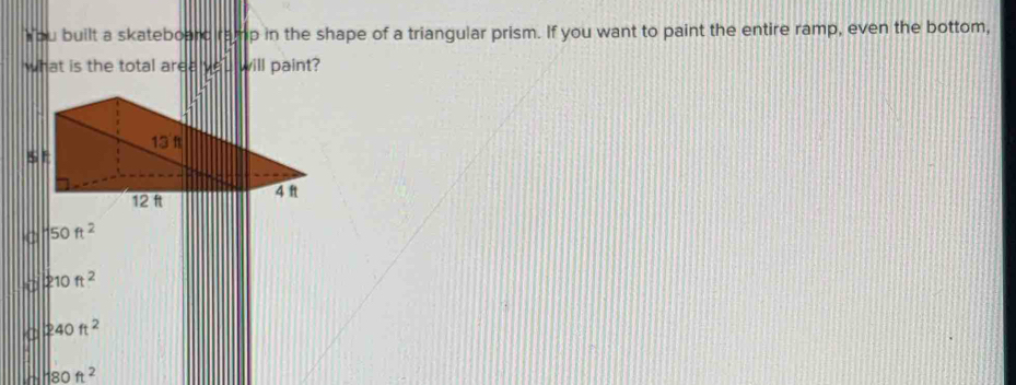 Solved: You built a skateboard ramp in the shape of a triangular prism ...