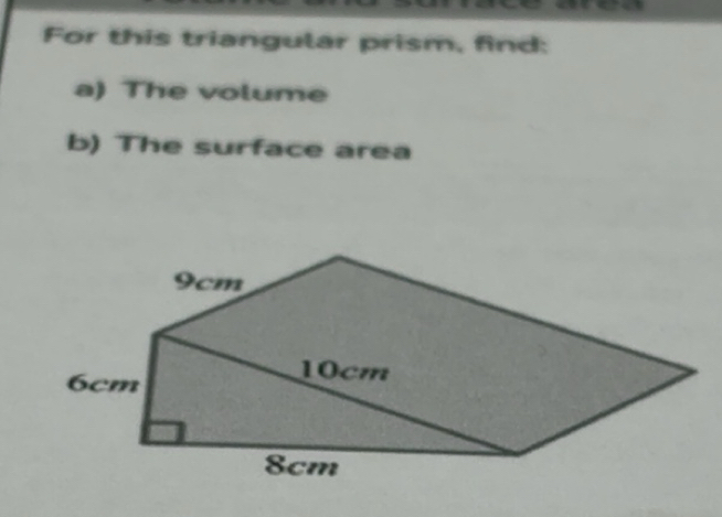 Solved: For this triangular prism, find: a) The volume b) The surface ...