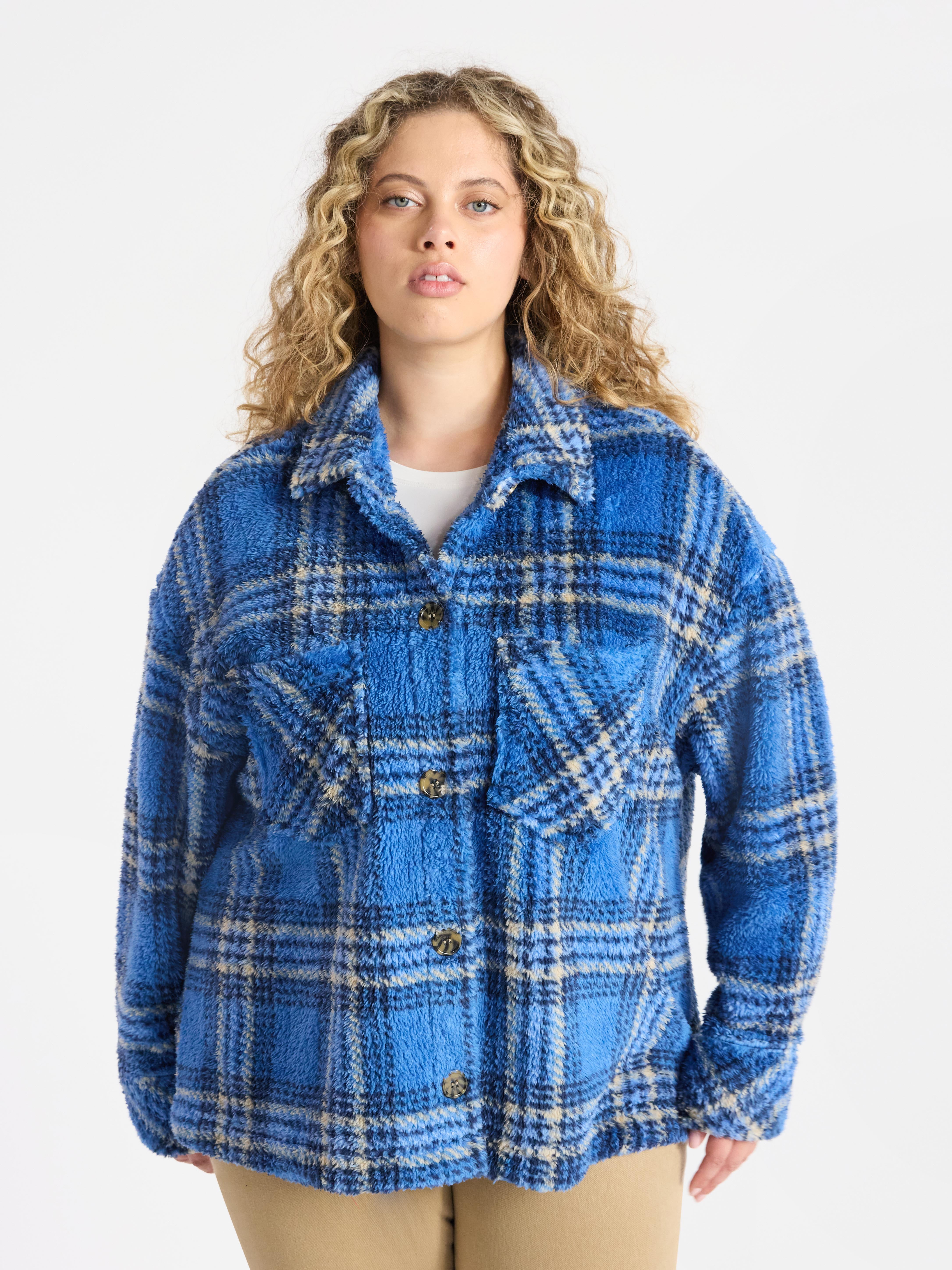 Terra & Sky Women's Plus Size Faux Shearling Shacket, Sizes 0X-5X ...