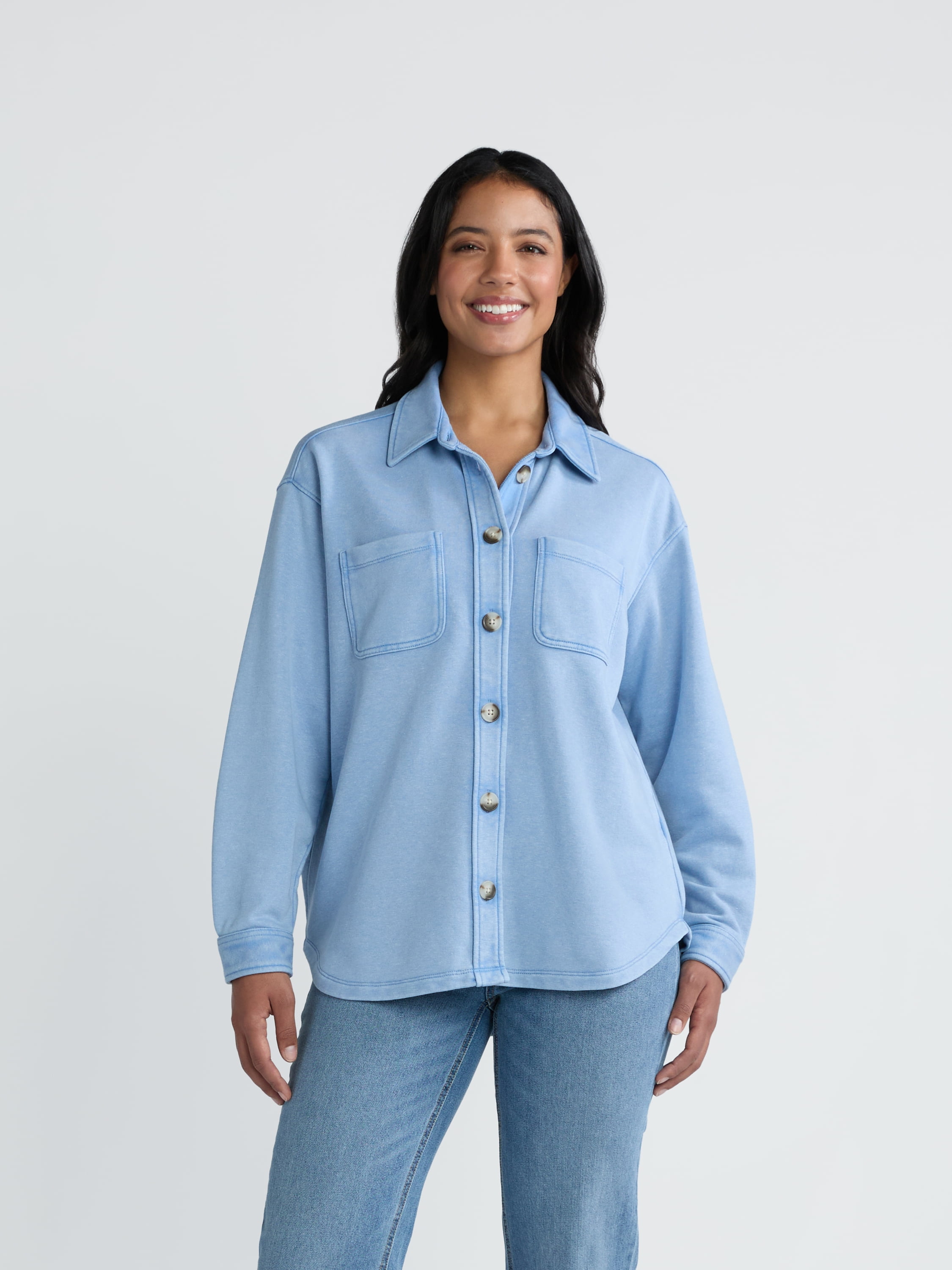 Time and Tru Women's Button Front Shacket, Sizes XS-XXXL - Walmart.com