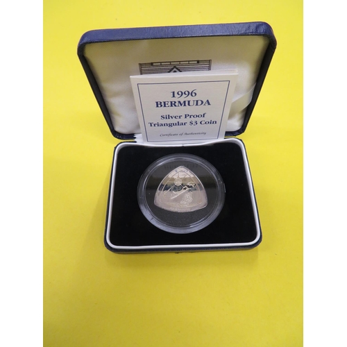 1996 Bermuda Silver Proof Triangular 3 Dollar Coin