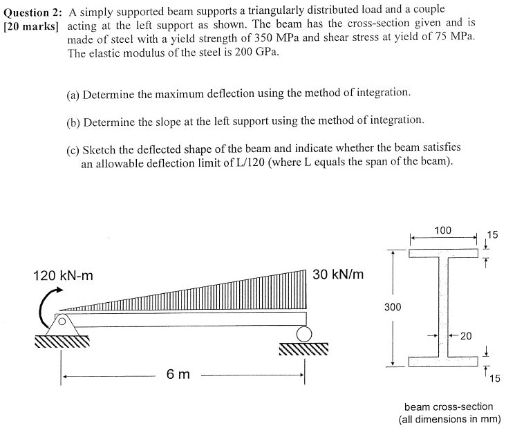 Question 2: A simply supported beam supports a triangularly...