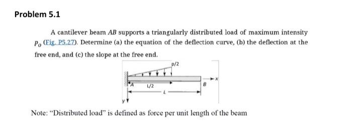 SOLVED: Problem 2: A cantilever beam is subjected to a triangularly ...