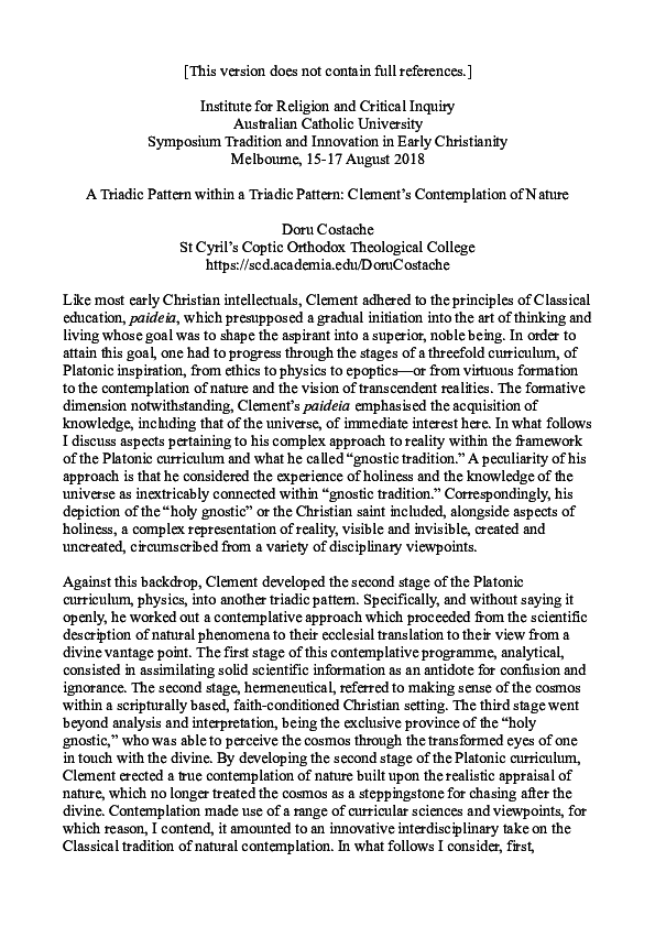 (PDF) A Triadic Pattern within a Triadic Pattern: Clement's ...