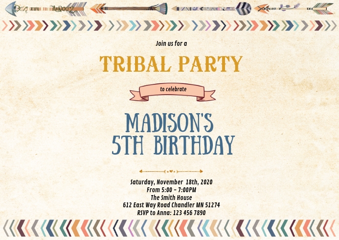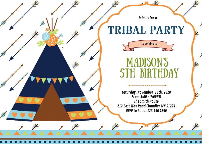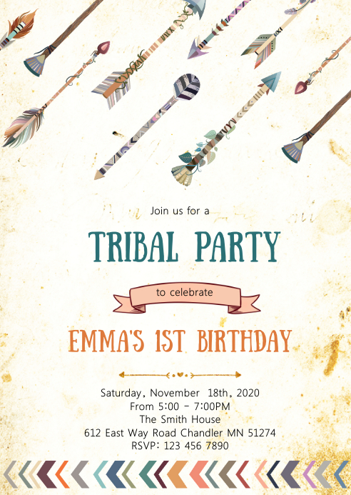 Tribal birthday party invitation Template | PosterMyWall