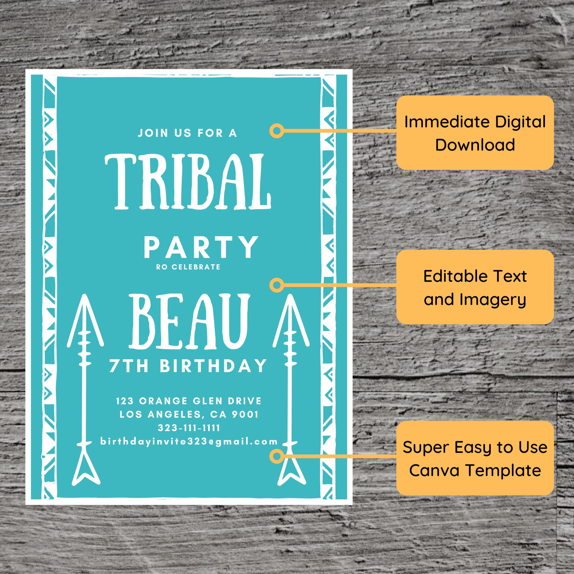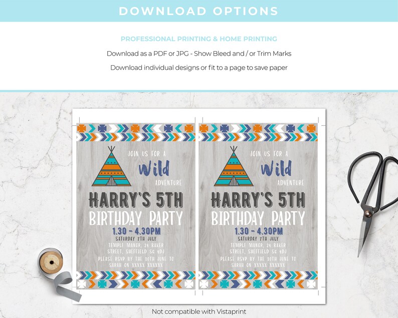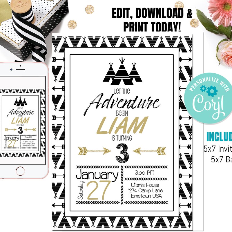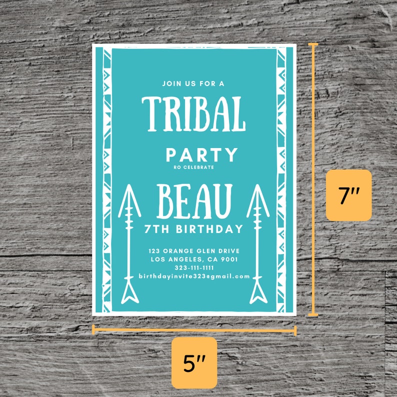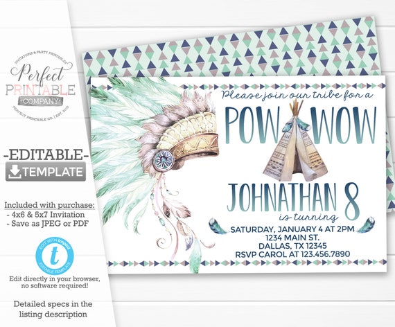 Tribal Birthday Invitation, Editable Invitation Instant Download 5 X 7 ...
