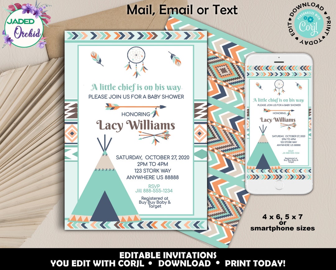Native American Tribal Baby Shower Invitation, Tribal Shower Invitation ...