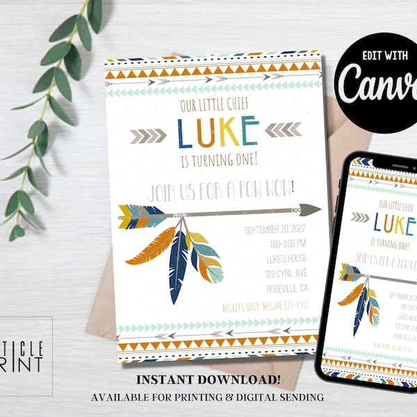 Editable Native Birthday Invitation Template, Ethnic Invitation ...