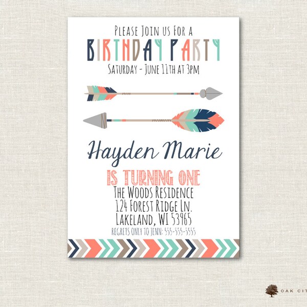Tribal Birthday Party Invitation - Bow & Arrow Tribal Invitation ...