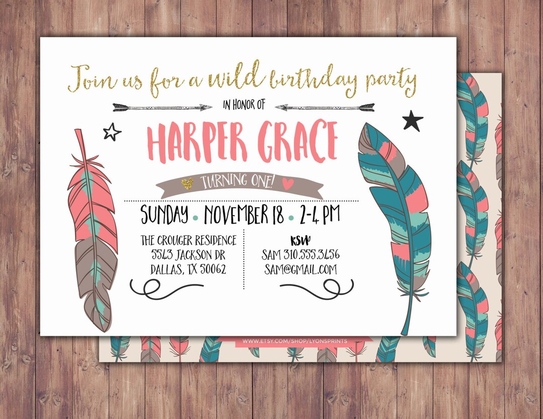 Tribal, birthday Invitation, BOHO birthday Invite, feathers ...