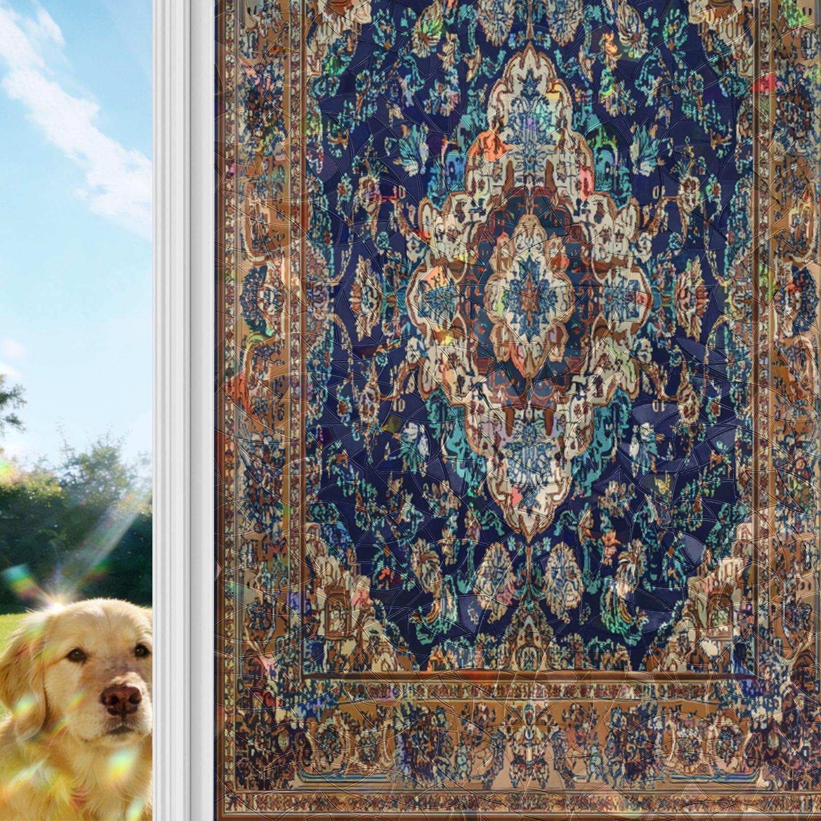 Blue Burnt Orange Boho Window Privacy Film Stain Glass,Reusable ...