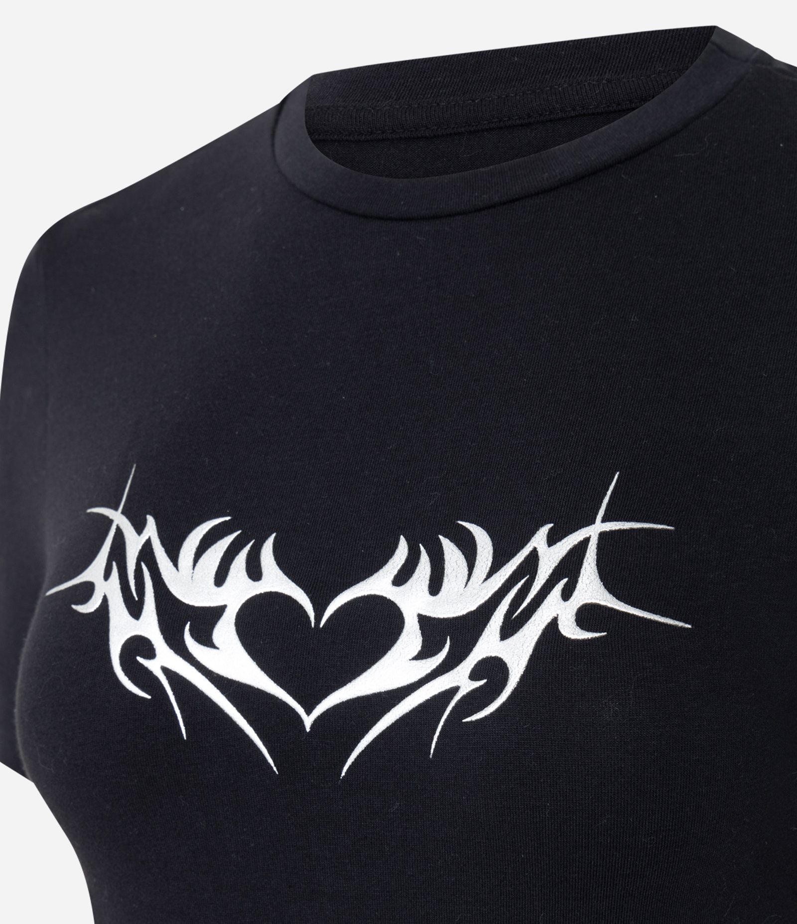 Camiseta em Algodão com Estampa de Coração Tribal Preto