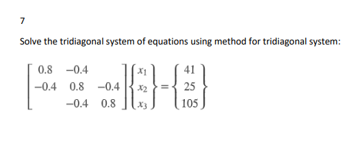 Solved Solve the following tridiagonal system with the | Chegg.com