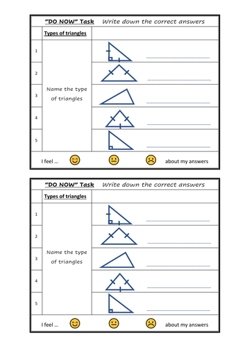 Triangle types - do NOW task | Teaching Resources