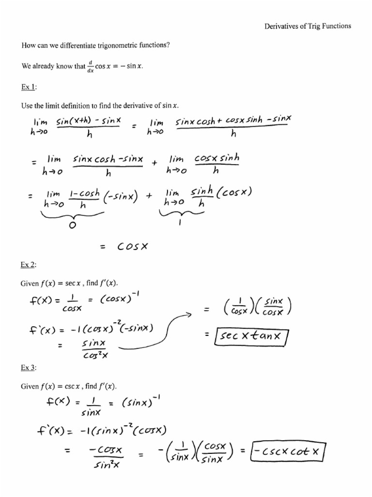 Trigonometric Function Derivatives Explained | PDF | Trigonometric ...