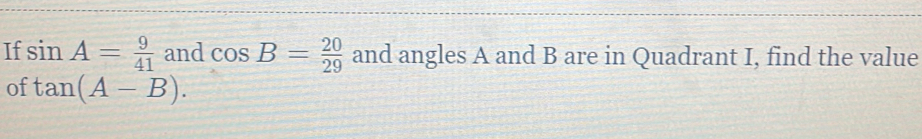 If sin A= 9/41 and cos B= 20/29 and angles A and B are in Quadrant I ...
