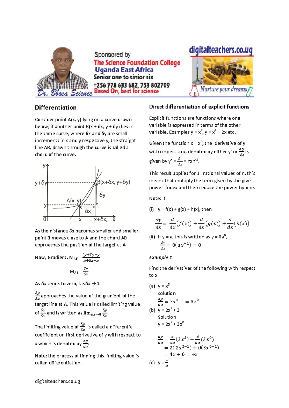 A Level Math Paper 1: Differentiation Concepts and Techniques - Studocu