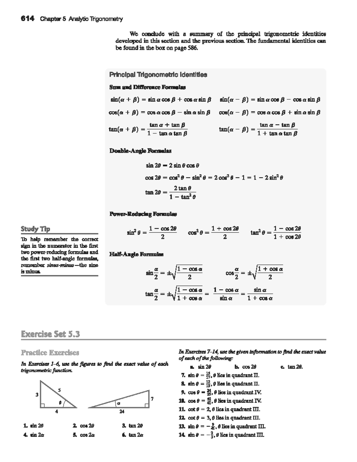 614 Chapter 5 Analytic Trigonometry Study Guide and Tips - Studocu
