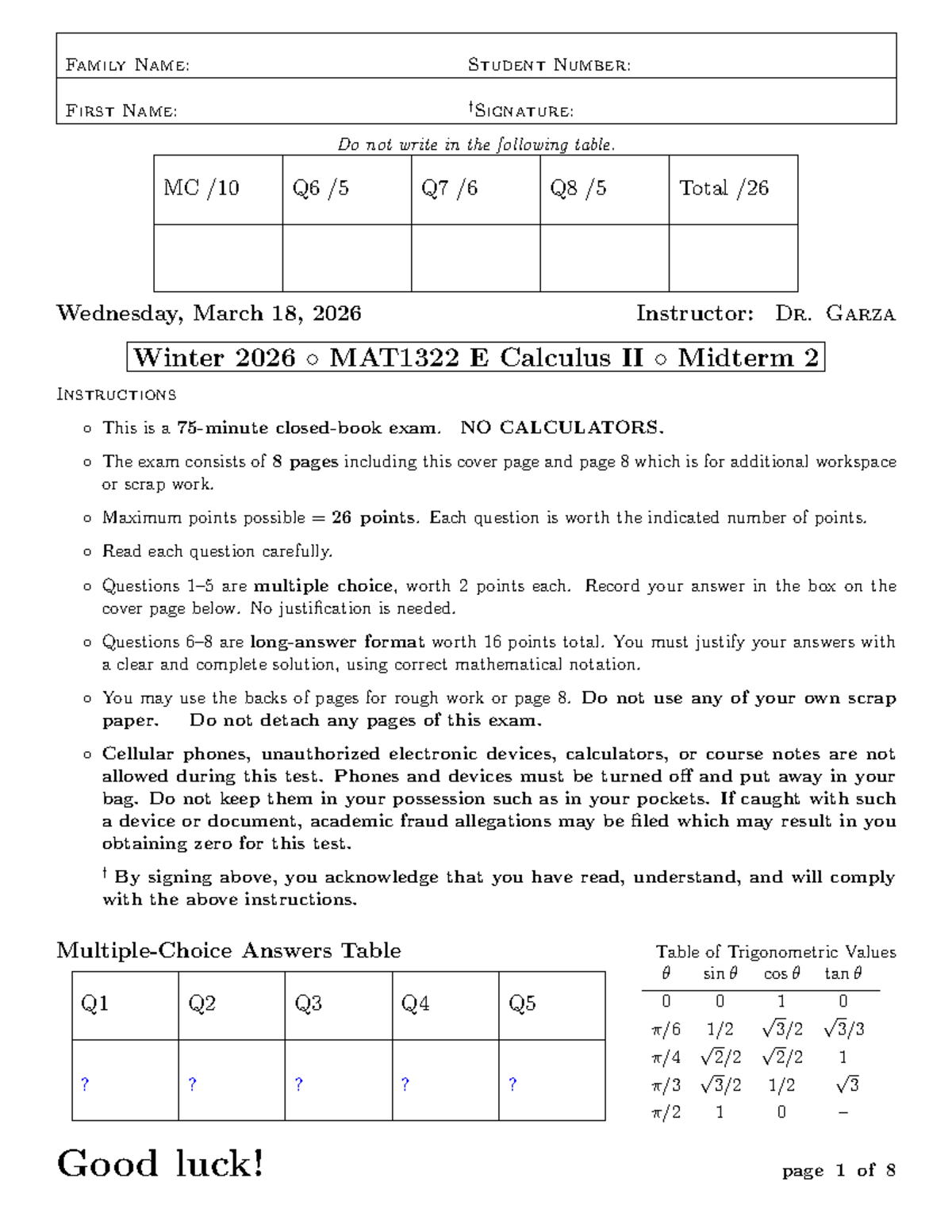 MAT1322 E Calculus II Midterm 2 Solutions - Winter 2026 - Studocu