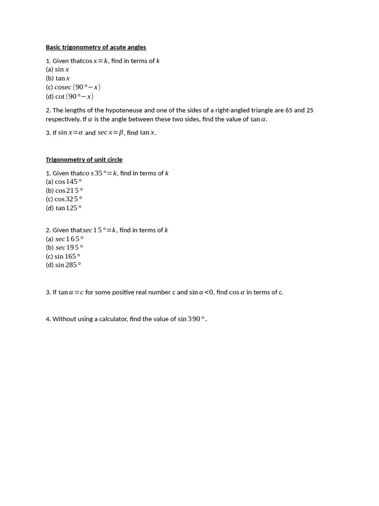 Trigonometry Practice Questions and Solutions | PDF | Trigonometric ...