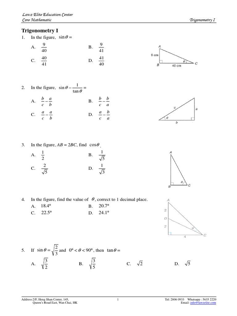 Grade 10 Math - Trigonometry Practice Questions - Studocu