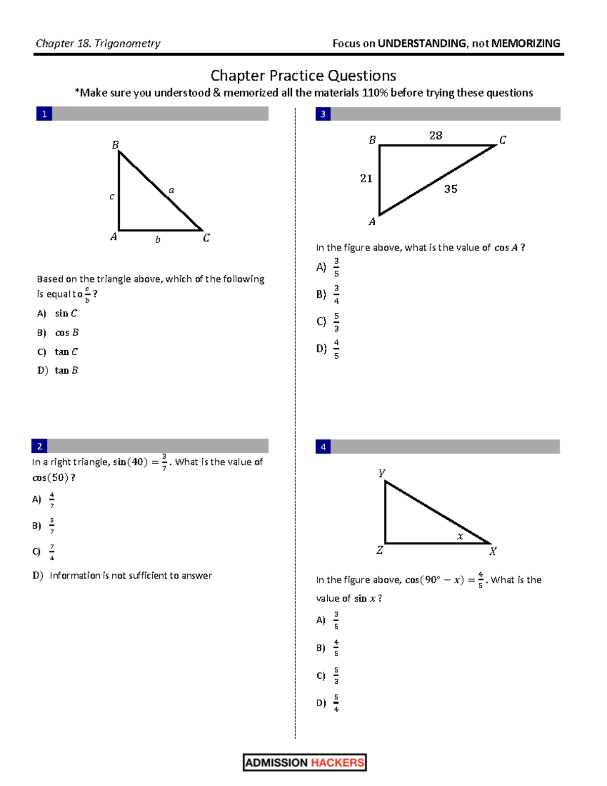 18. Trigonometry Practice - Chapter Practice Questions *Make sure you ...