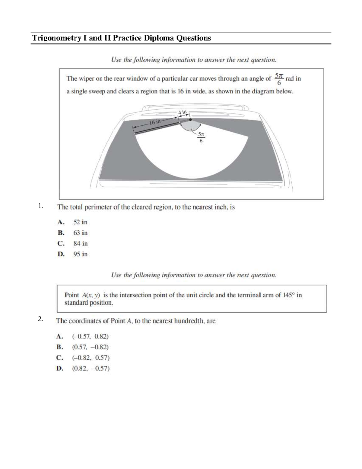 Trigonometry Review and Practice Questions – Complete Test Preparation Inc.