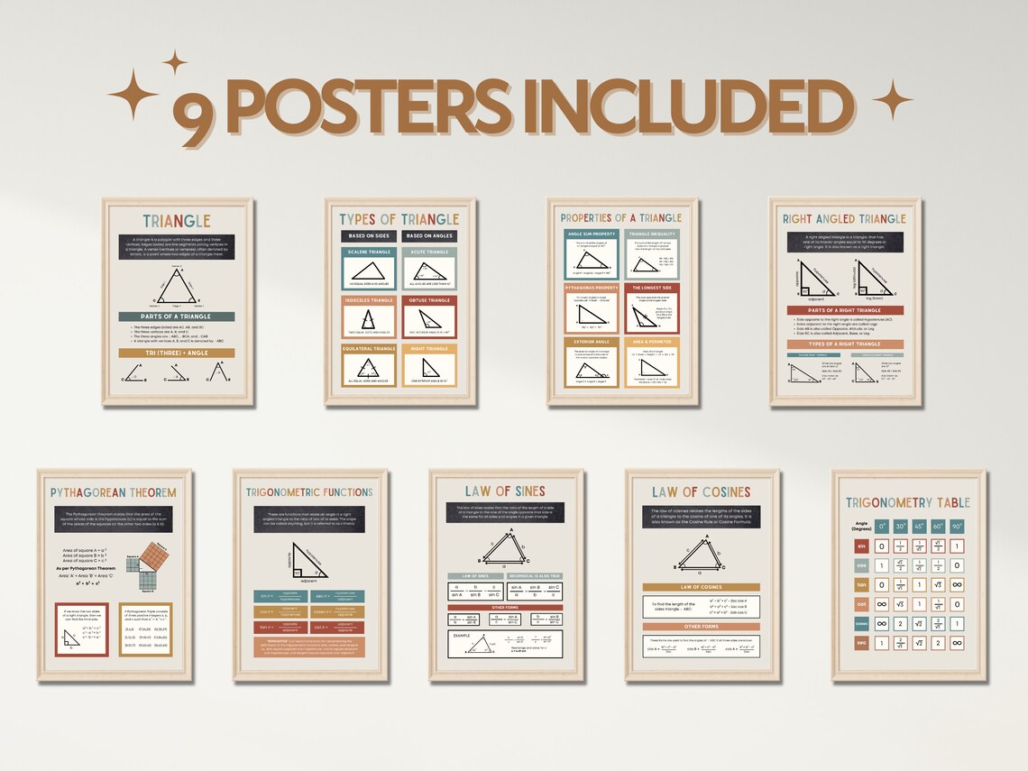 Trigonometry Posters, Types Properties of Triangle, Sine Law, Cosine ...