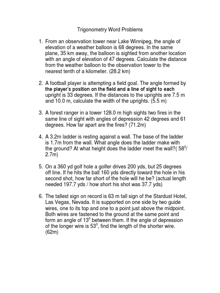 Trig Word Problems Worksheet - Printable And Enjoyable Learning
