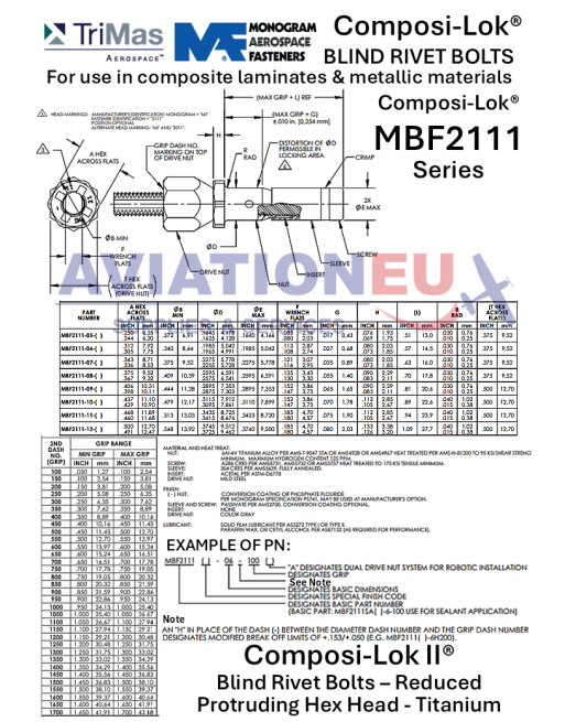 TRIMAS AEROSPACE™ ALLFAST® & MONOGRAM® Blind Rivets & Lockbolts SKU ...