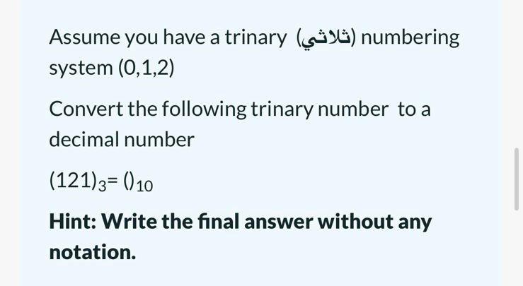 Solved Assume you have a trinary (ثلاثي) numbering system | Chegg.com