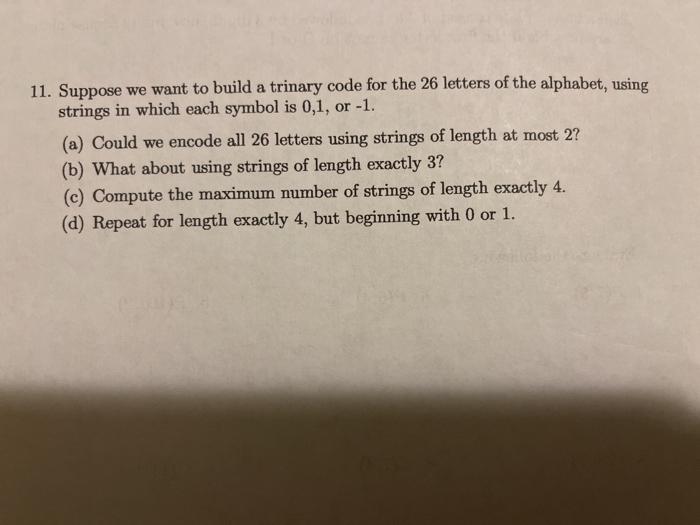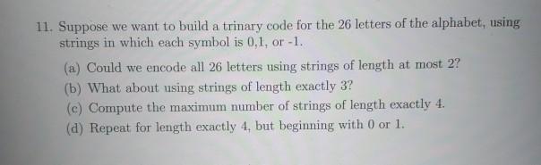 Solved 11. Suppose we want to build a trinary code for the | Chegg.com