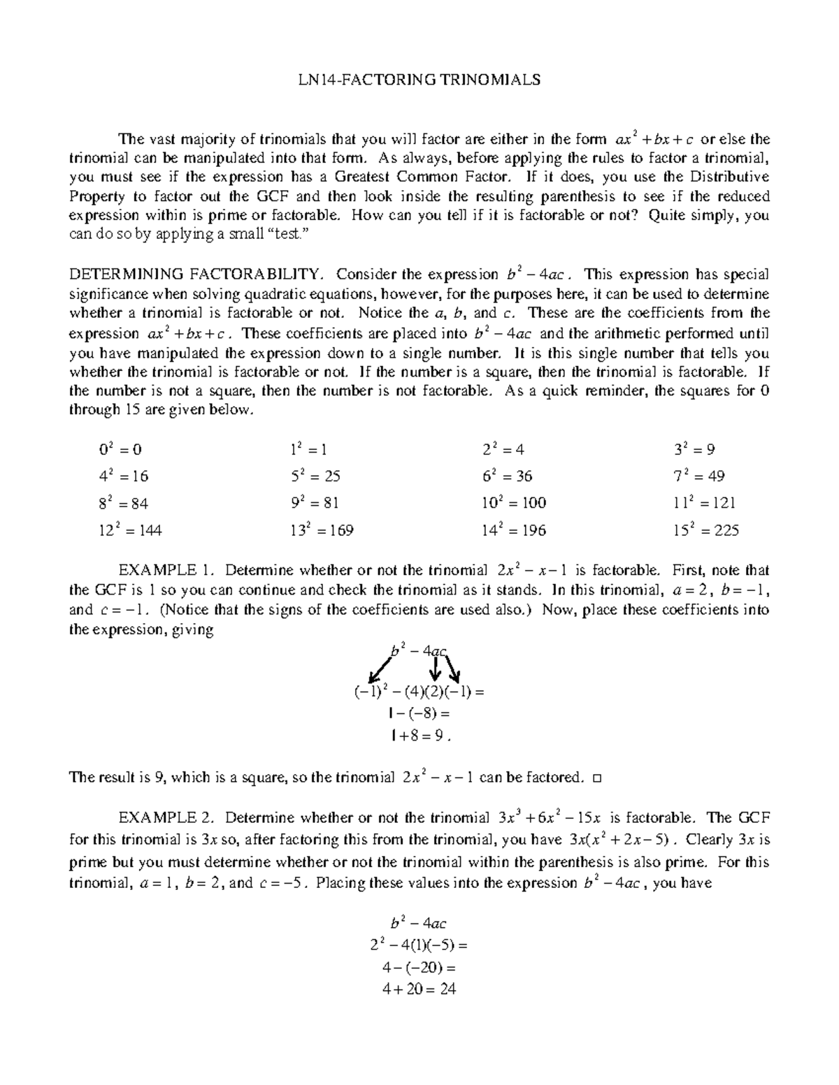 LN14- Factoring Trinomials - LN14-FACTORING TRINOMIALS The vast ...