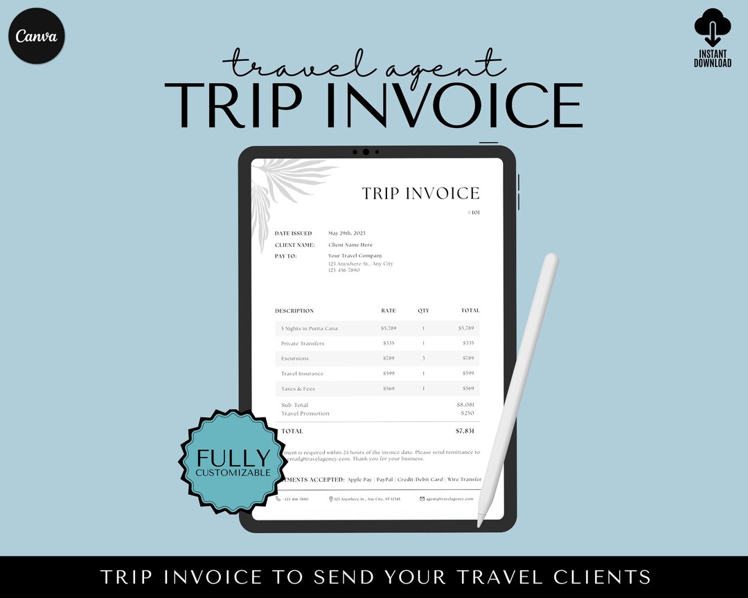 Travel Agent Client Trip Invoice, Travel Agency Forms, Travel Business ...