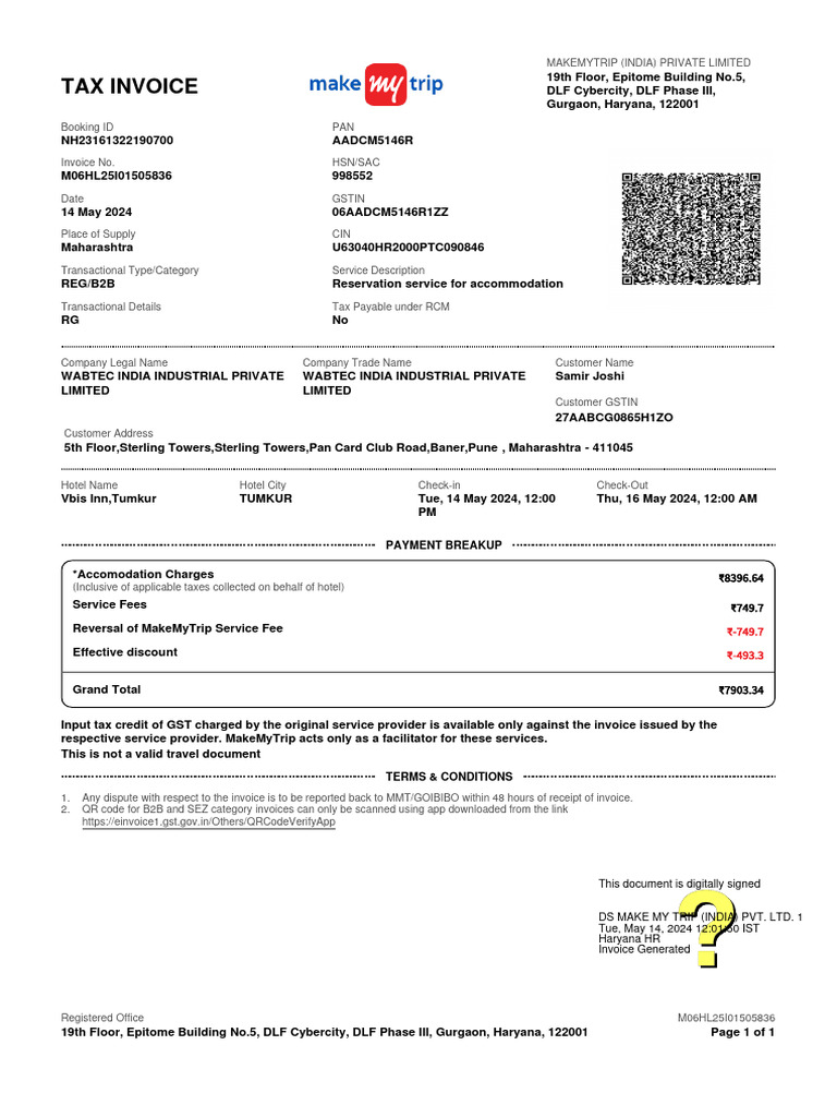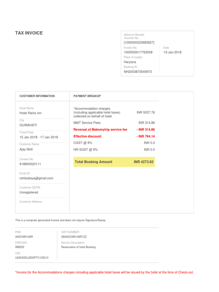Makemy Trip Invoice | PDF | Invoice | Receipt