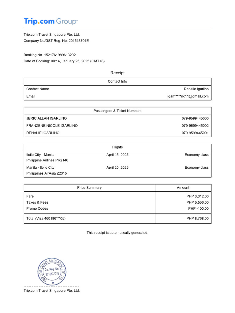 Trip.com E-Receipt | Fast Digital Receipt for Bookings