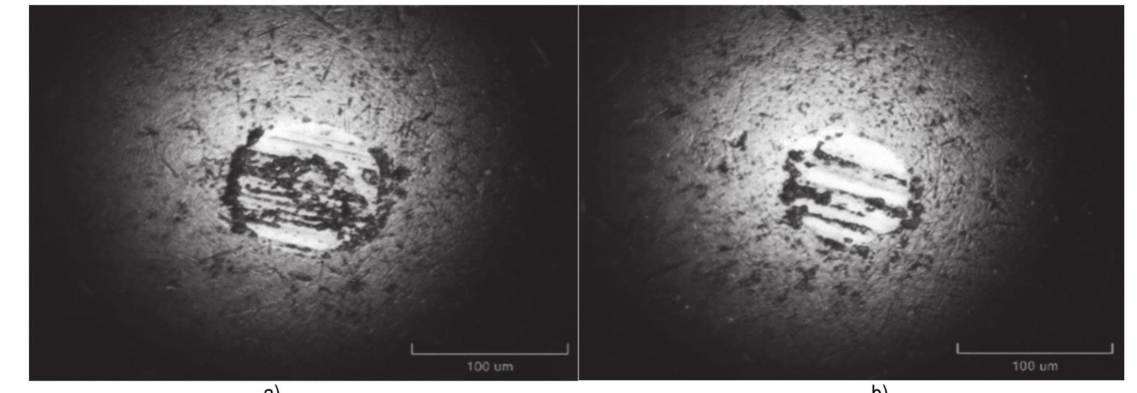 Optical micrographs of tripometer ball profile after sliding