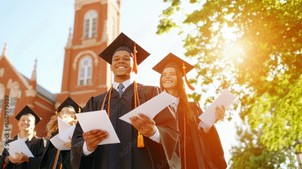 Happy Graduates Celebrate Achievement with Diplomas and Confetti A ...