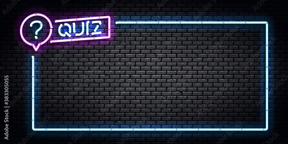 Quiz Game Neon Template For Trivia Show On Brick Wall Background Frame ...