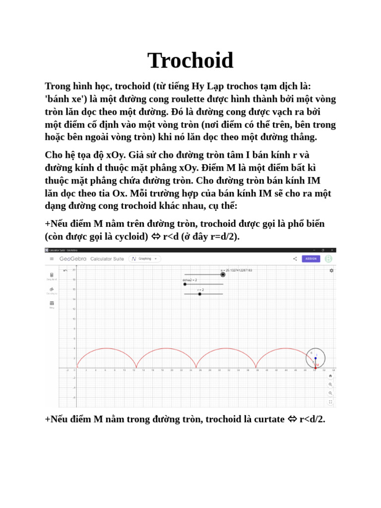 Cycloid, Trochoid, Epicycloid, Hypocycloid, Epitrochoid and Hypotrochoid