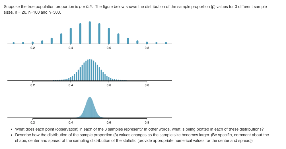 Answered: Suppose the true population proportion is p = 0.5. The figure ...