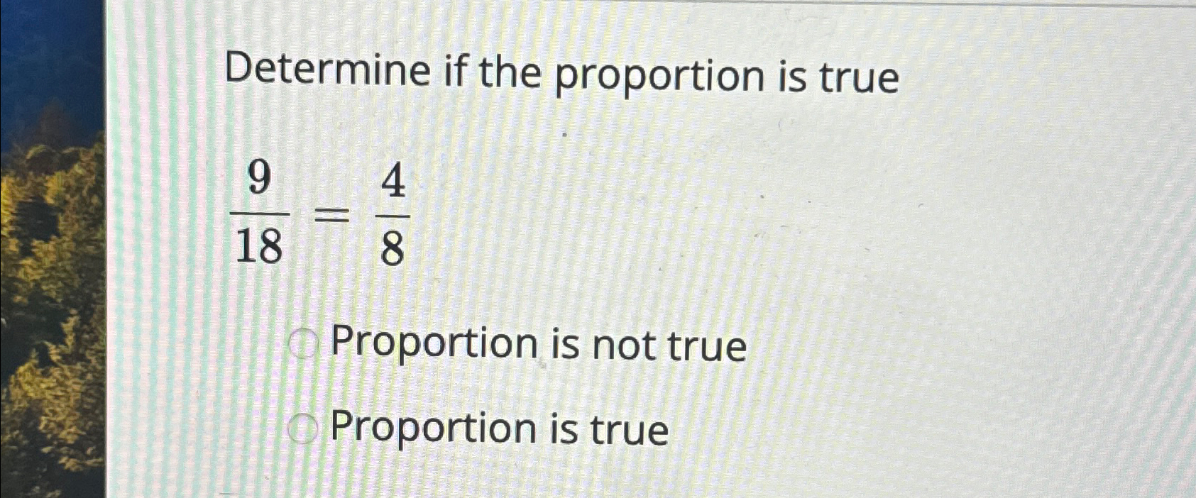Solved Determine if the proportion is true918=48Proportion | Chegg.com