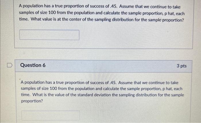 Solved A population has a true proportion of success of .45. | Chegg.com