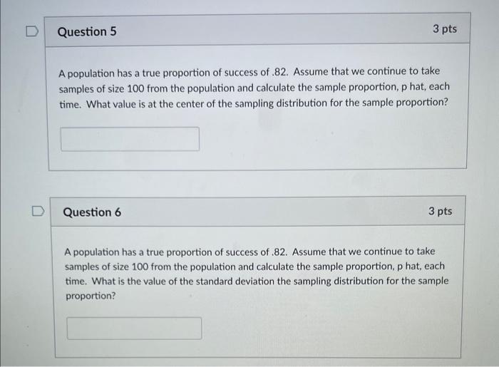 Solved A population has a true proportion of success of .82. | Chegg.com
