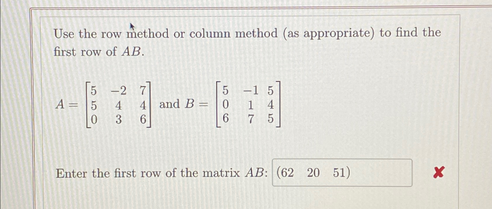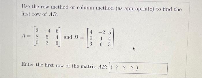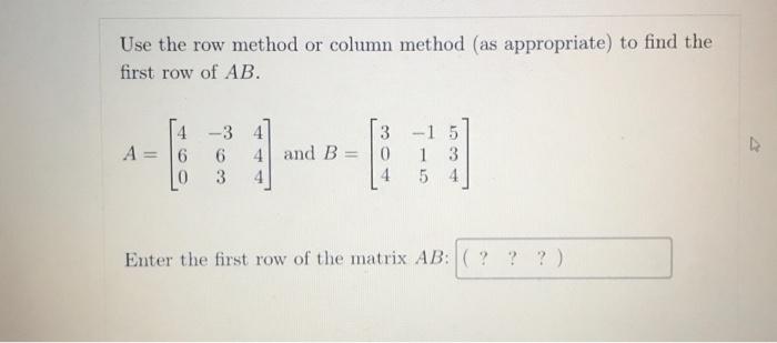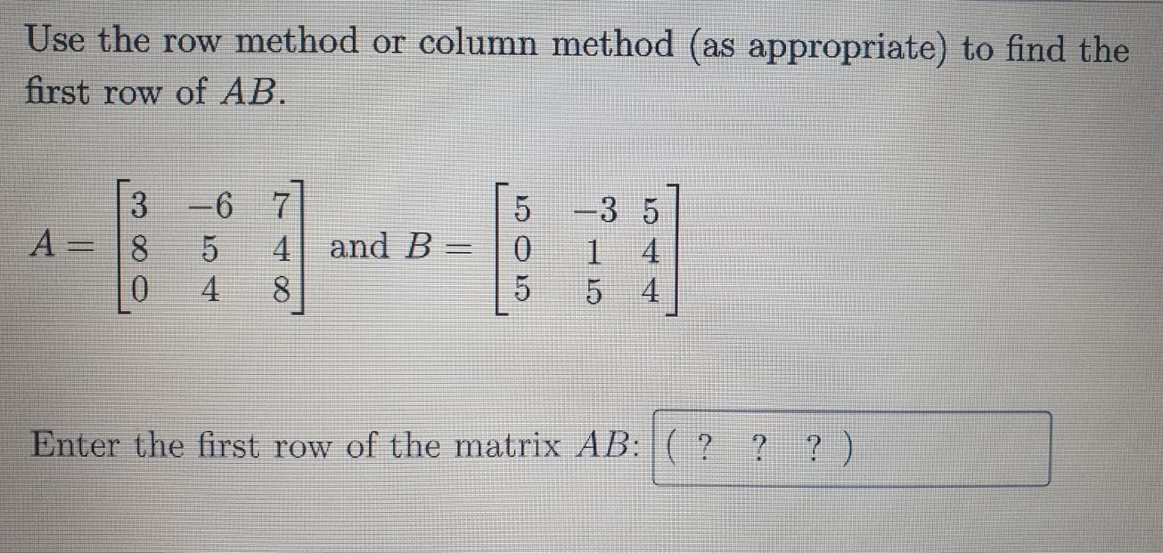 SOLVED: Use the row method or column method (as appropriate) to find ...