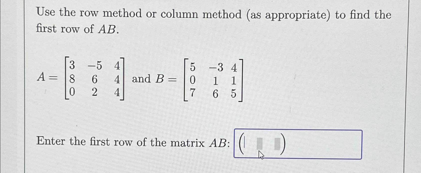 SOLVED: Use the following matrices and either the row method or the ...