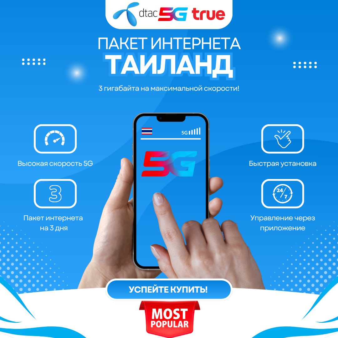 Пакет интернета в Таиланде Dtac Truemove 5G eSIM - 3 гигабайта/3 дня ...