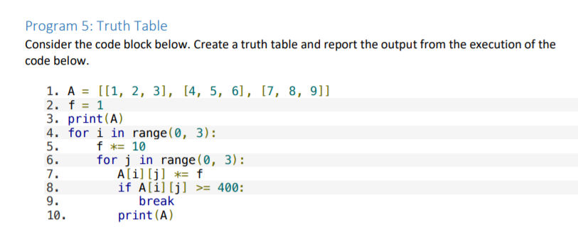 Solved Program 5: Truth Table Consider the code block below. | Chegg.com