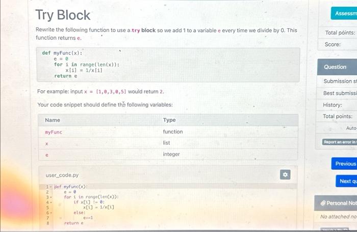 Solved Try Block Rewrite the following function to use a.try | Chegg.com