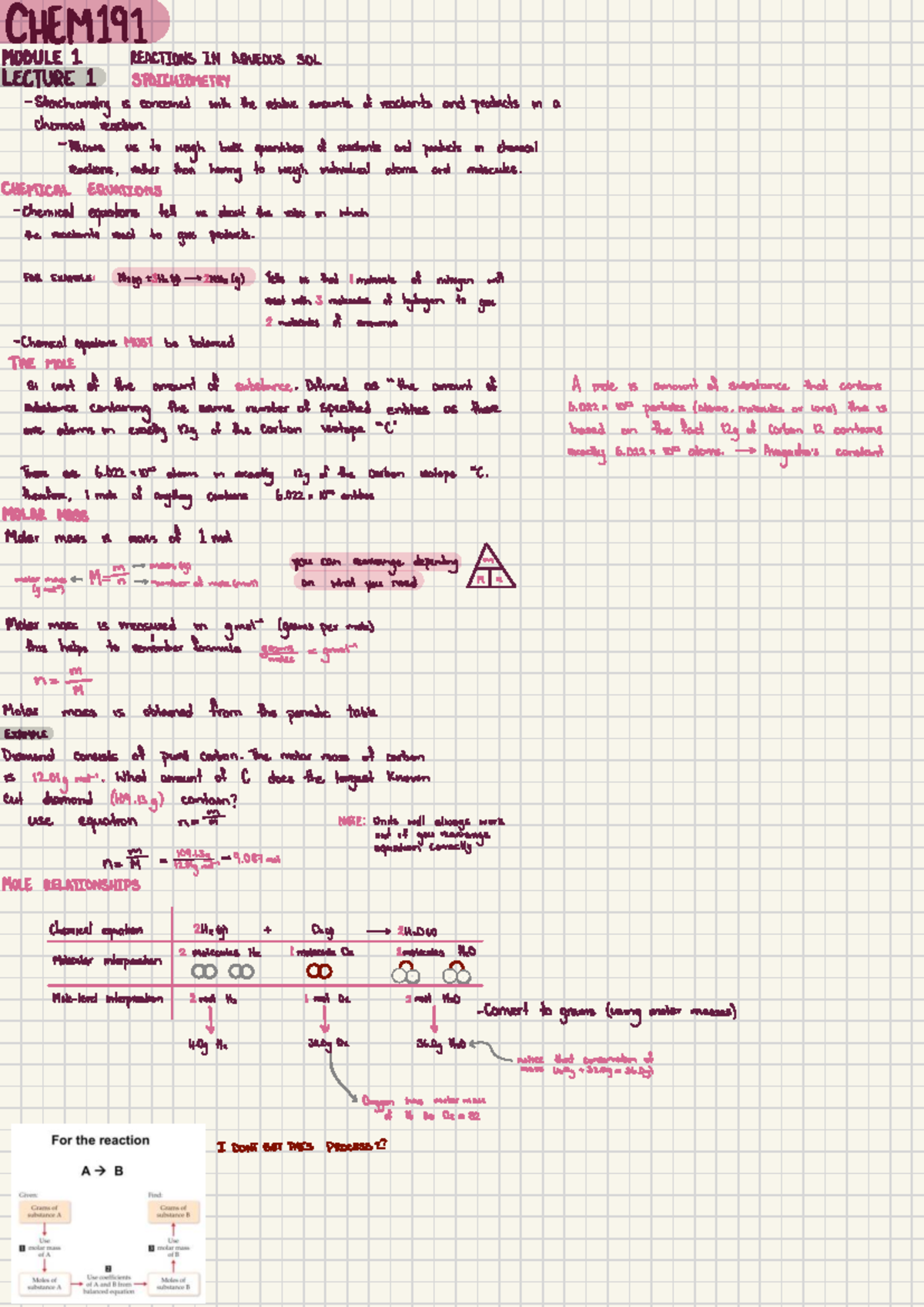 CHEM191 - Module 1: Reactions and Stoichiometry Notes - Studocu